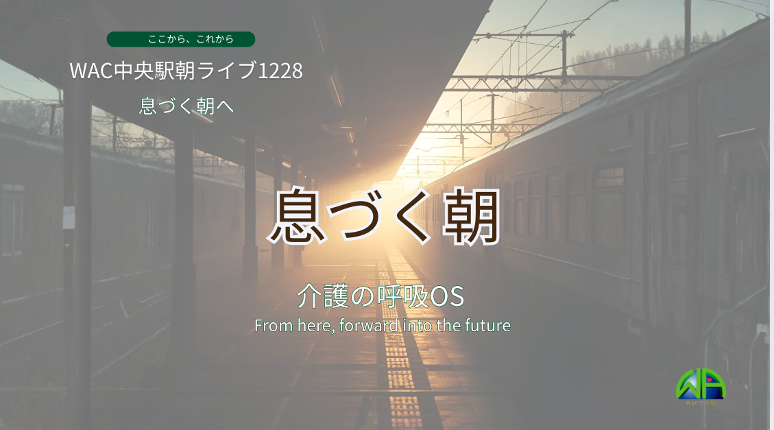【WAC中央駅朝ライブ1228】では、「息づく朝へ〜介護の呼吸OS」をテーマに、介護における“説明や技法の手前”について静かに語りました。