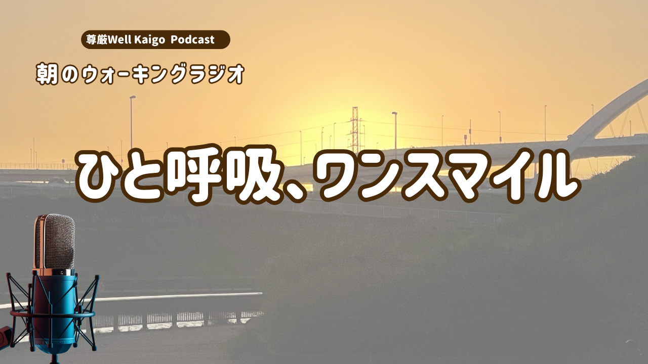 私は今、介護の現場に立っているわけではありません。けれど、朝の散歩や仕事の合間、すれ違う人との一瞬のやり取りで、「ひと呼吸、ワンスマイル」を試しています。