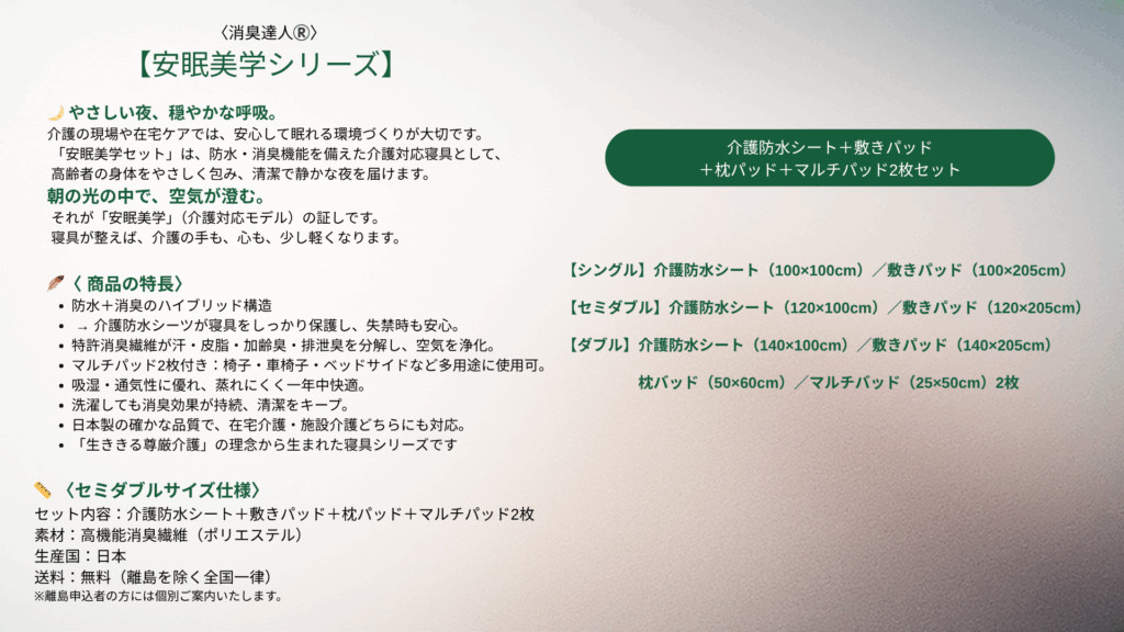 そんな“安心して眠れる時間”を届けるための、介護対応モデルです。